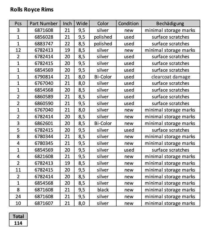 114 Stk. originale Rolls Royce Felgen