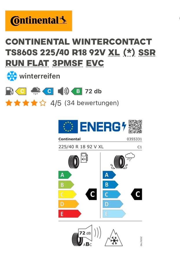 Start Suchergebnisse 225/40R18 92V XL CONTINENTAL WINTER CONTACT TS860 SSR ❄️