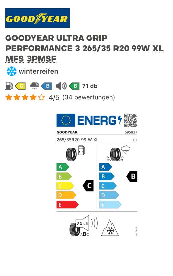 Start Suchergebnisse 265/35R20 99W XL GOODYEAR ULTRAGRIP PERFORMANCE 3 ❄️